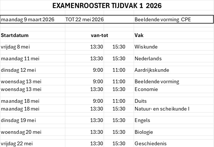 De examenuitslag van het eerste tijdvak is op donderdag 11 juni 2026.